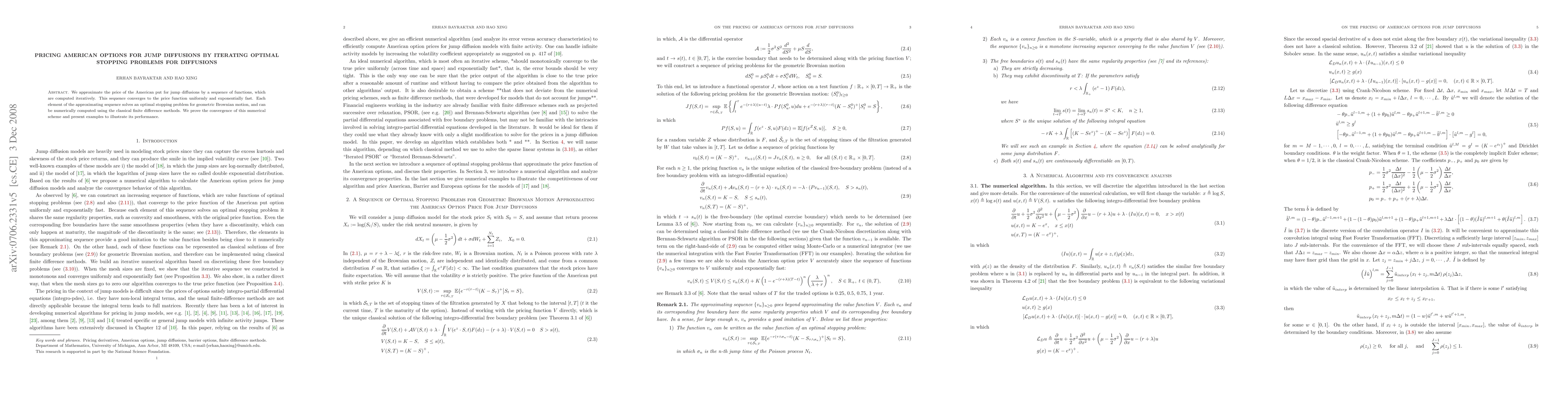 This paper proposes an iterative method to approximate the price of American put options under jump diffusion models, converging uniformly and exponentially. The method solves optimal stopping problems for geometric Brownian motion and is numerically implementable via finite difference methods.
