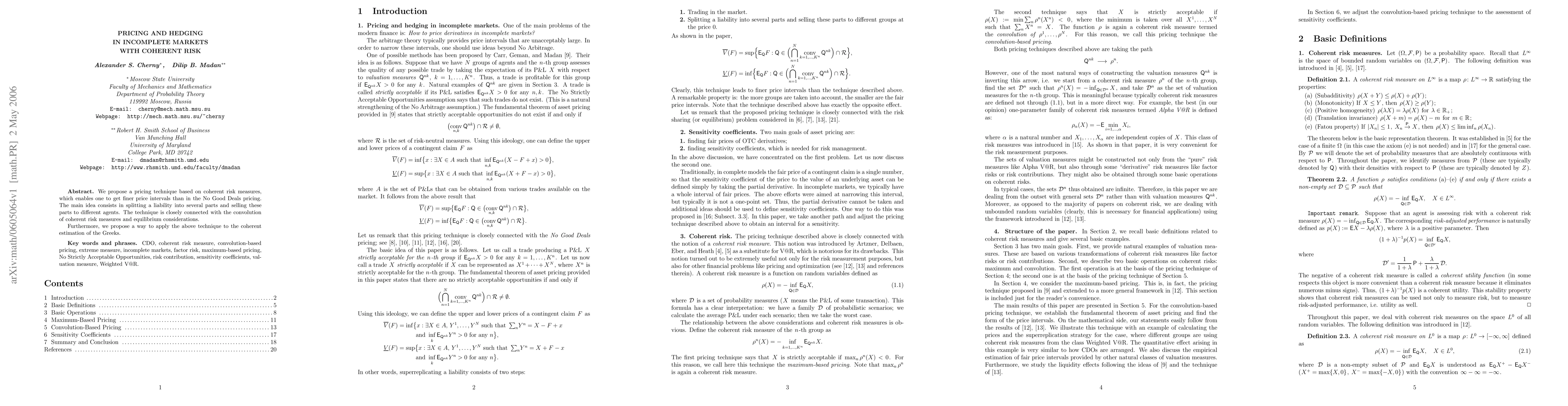 Researchers develop a pricing technique using coherent risk measures to split liabilities into parts and sell them to different agents, allowing for finer price intervals than existing methods.