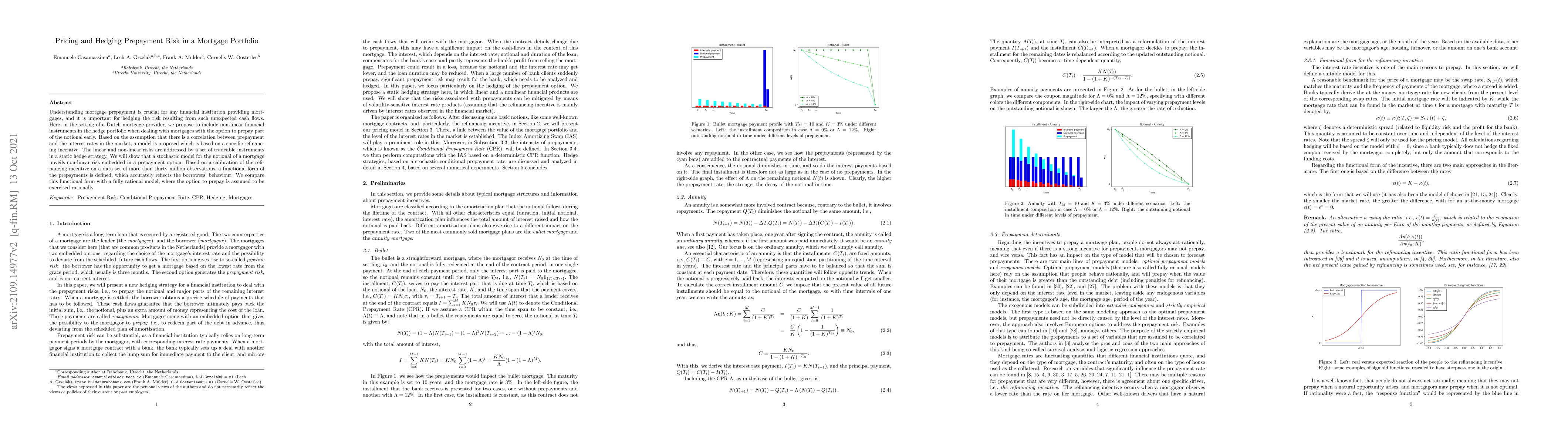 This paper proposes a model to price and hedge prepayment risk in a mortgage portfolio by incorporating non-linear financial instruments. It demonstrates that a stochastic model calibrated on extensive data accurately reflects borrowers' prepayment behavior and compares it with a fully rational model.