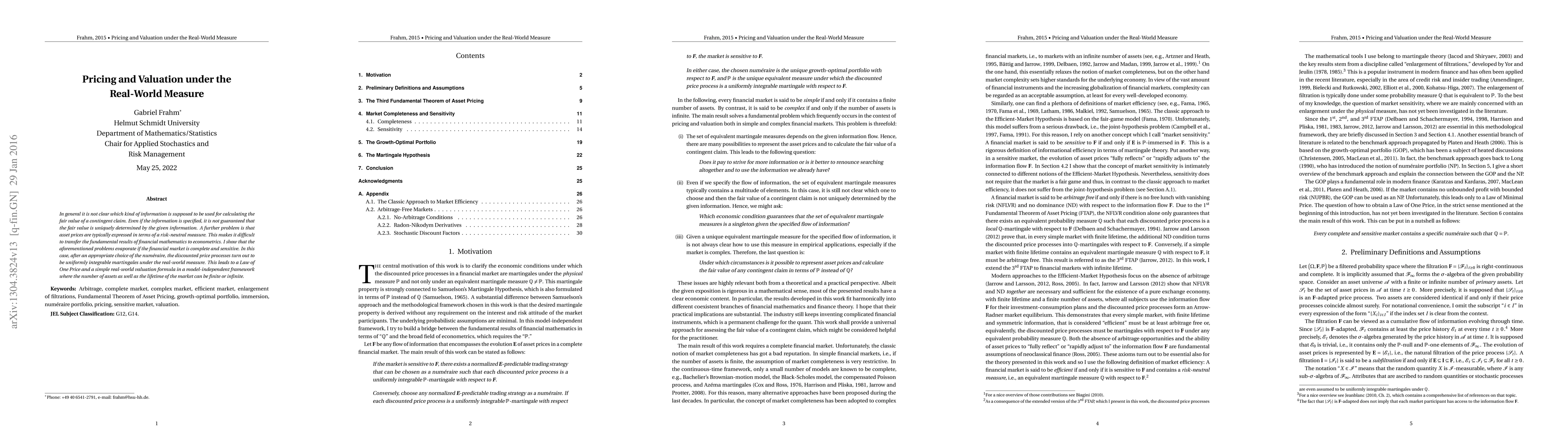 In general it is not clear which kind of information is supposed to be used for calculating the fair value of a contingent claim. Even if the information is specified, it is not guaranteed that the fair value is uniquely determined by the given information. A further problem is that asset prices are typically expressed in terms of a risk-neutral measure. This makes it difficult to transfer the fundamental results of financial mathematics to econometrics. I show that the aforementioned problems evaporate if the financial market is complete and sensitive. In this case, after an appropriate choice of the numeraire, the discounted price processes turn out to be uniformly integrable martingales under the real-world measure. This leads to a Law of One Price and a simple real-world valuation formula in a model-independent framework where the number of assets as well as the lifetime of the market can be finite or infinite.