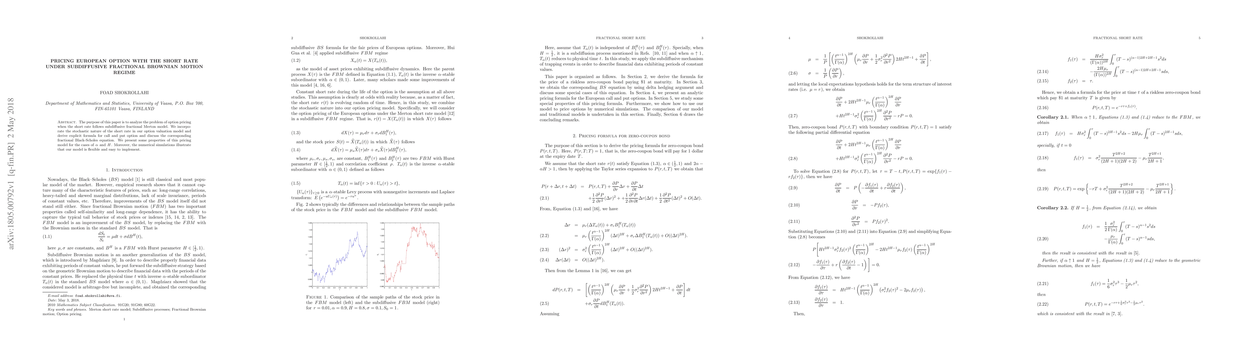This paper develops a pricing model for European options under the short rate's subdiffusive fractional Brownian motion, deriving explicit formulas for call and put options and discussing the associated fractional Black-Scholes equation. Numerical simulations demonstrate the model's flexibility and ease of implementation.