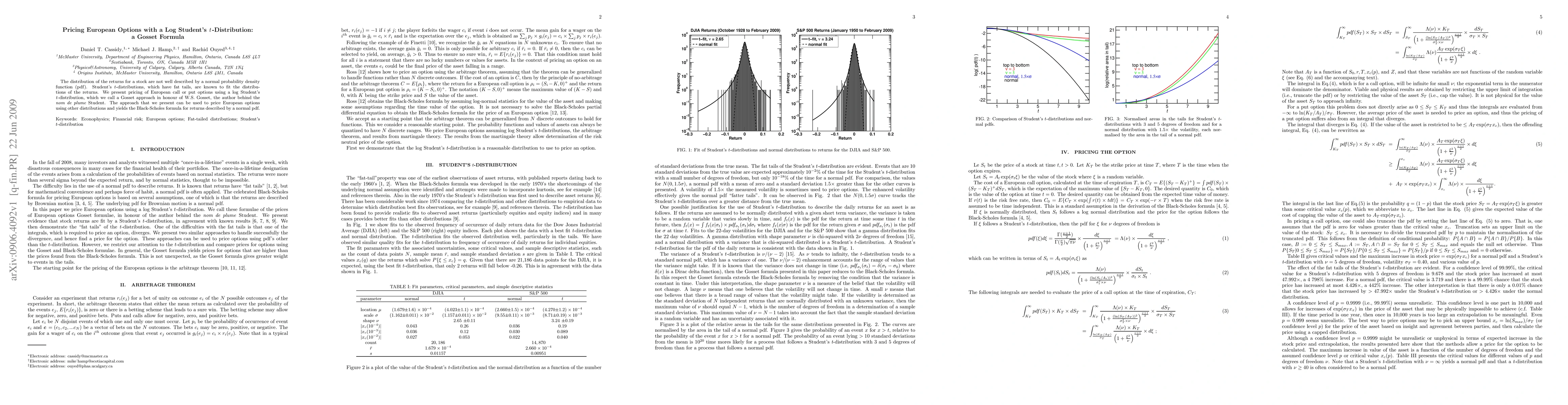 This paper proposes a Gosset formula for pricing European options using a log Student's t-distribution to better capture the fat tails in stock returns compared to the normal distribution. It extends the Black-Scholes formula to accommodate non-normal return distributions.