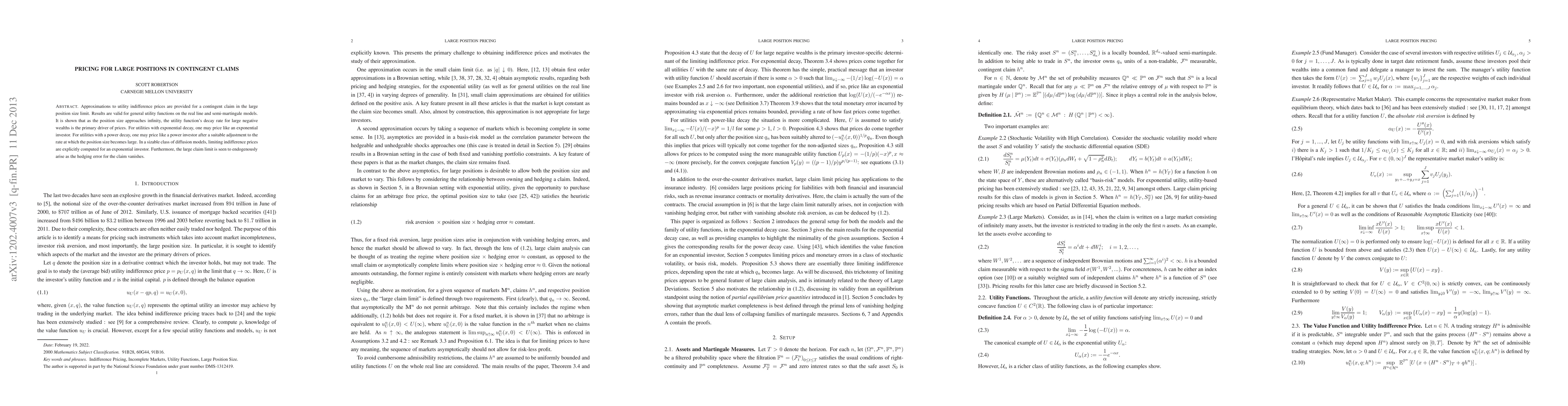 Approximations to utility indifference prices are provided for a contingent claim in the large position size limit. Results are valid for general utility functions on the real line and semi-martingale models. It is shown that as the position size approaches infinity, the utility function's decay rate for large negative wealths is the primary driver of prices. For utilities with exponential decay, one may price like an exponential investor. For utilities with a power decay, one may price like a power investor after a suitable adjustment to the rate at which the position size becomes large. In a sizable class of diffusion models, limiting indifference prices are explicitly computed for an exponential investor. Furthermore, the large claim limit is seen to endogenously arise as the hedging error for the claim vanishes.