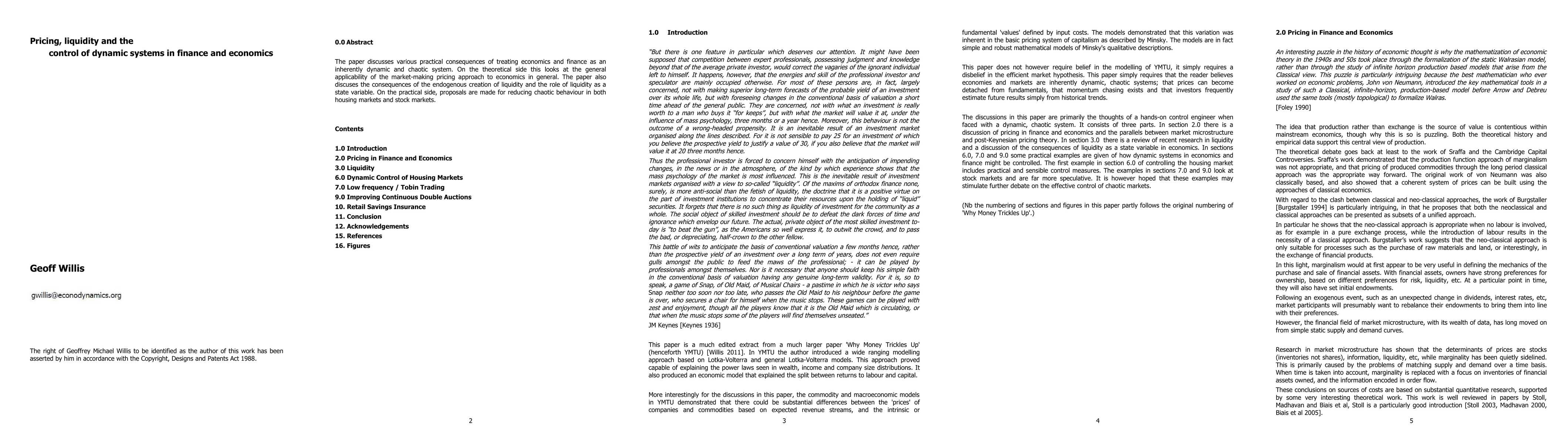 This paper explores the dynamic and chaotic nature of economics and finance, examining the market-making pricing approach and the endogenous creation of liquidity. It proposes methods to mitigate chaotic behavior in housing and stock markets.
