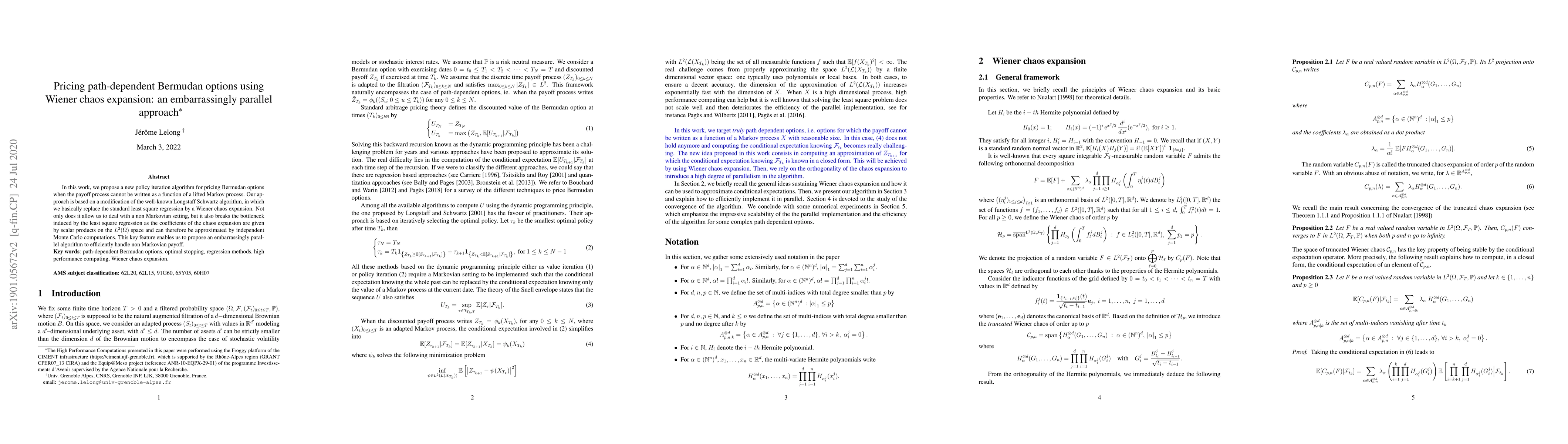 This paper introduces a modified Longstaff-Schwartz algorithm for pricing path-dependent Bermudan options using Wiener chaos expansion, replacing least square regression with chaos expansion to handle non-Markovian settings and enabling an embarrassingly parallel computation.