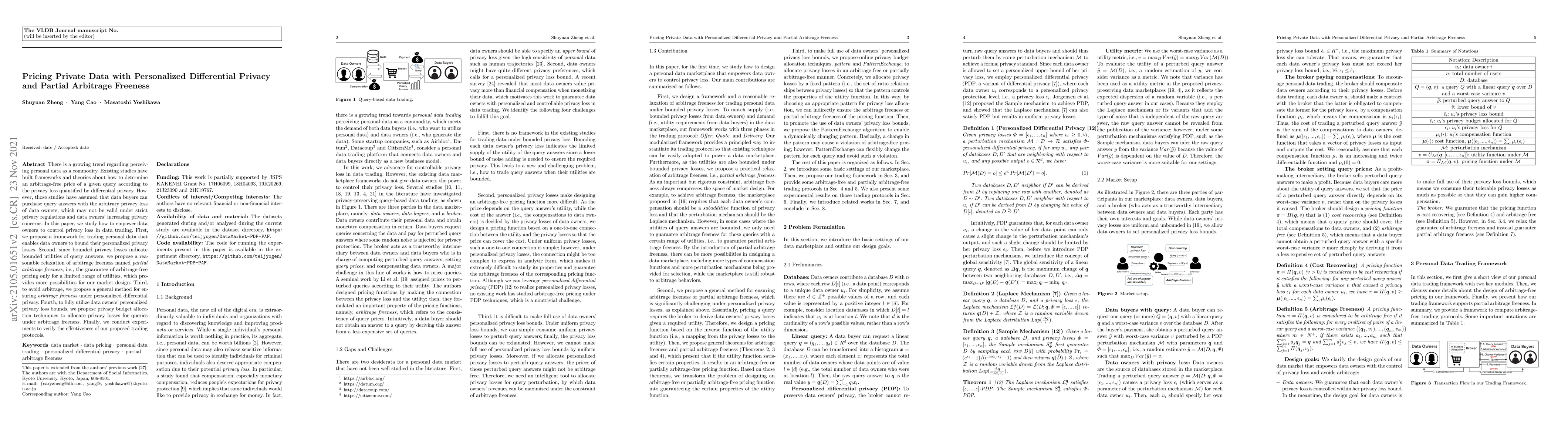 This paper proposes a framework for trading personal data that allows data owners to control privacy loss through personalized differential privacy, introducing partial arbitrage freeness to ensure pricing fairness within bounded utilities. It also presents methods to maintain arbitrage-free pricing and privacy budget allocation techniques, validated through experiments.