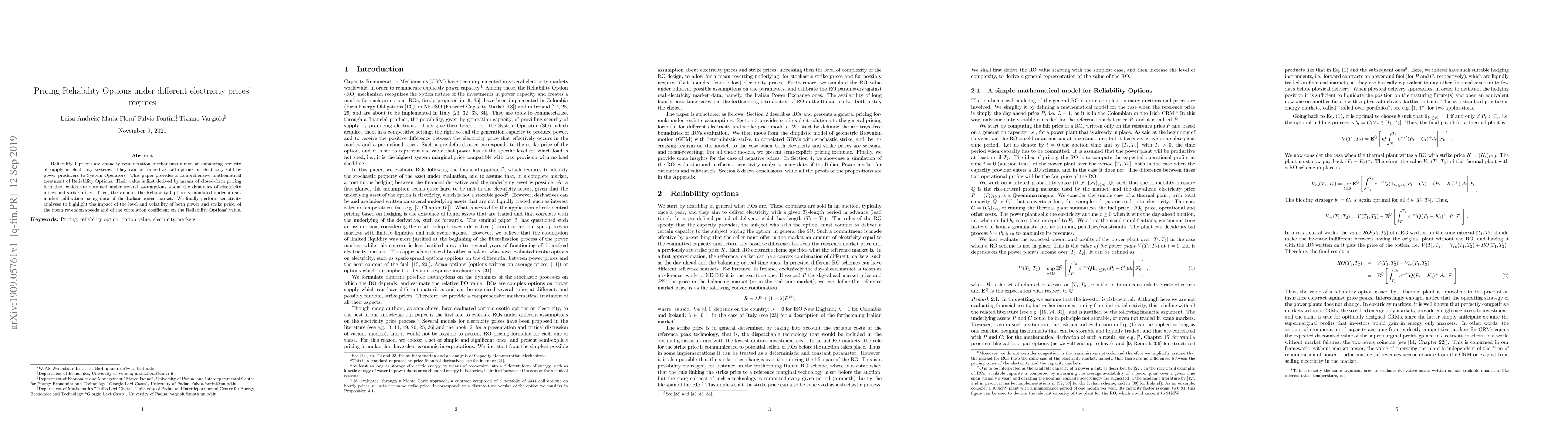 This paper mathematically derives the pricing of Reliability Options, which enhance electricity supply security, using closed-form formulae and real-market calibration from the Italian power market. Sensitivity analyses reveal the impact of price dynamics and correlation on the options' value.