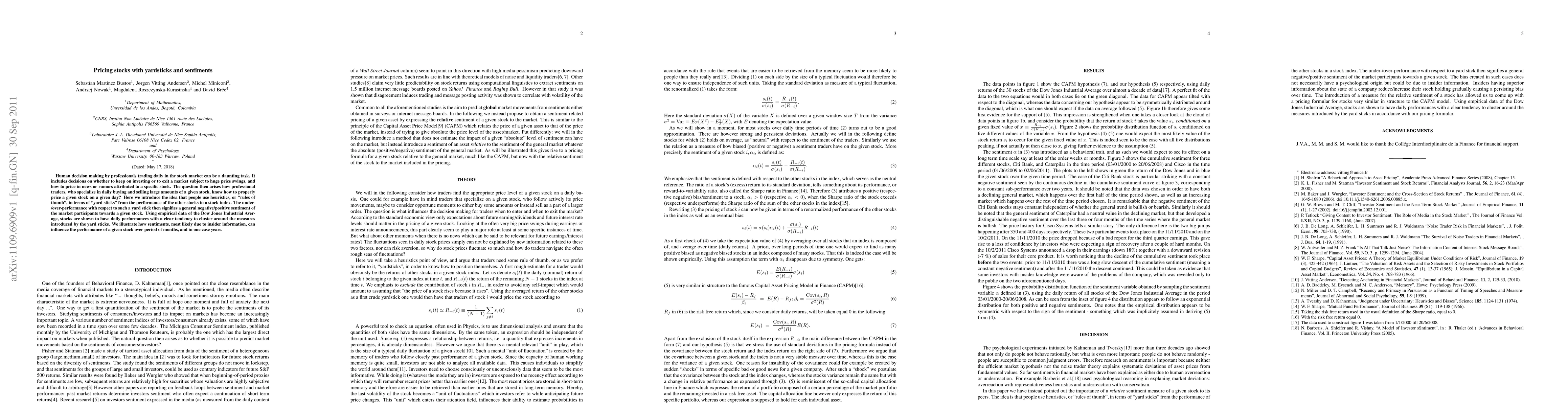 Human decision making by professionals trading daily in the stock market can be a daunting task. It includes decisions on whether to keep on investing or to exit a market subject to huge price swings, and how to price in news or rumors attributed to a specific stock. The question then arises how professional traders, who specialize in daily buying and selling large amounts of a given stock, know how to properly price a given stock on a given day? Here we introduce the idea that people use heuristics, or "rules of thumb", in terms of "yard sticks" from the performance of the other stocks in a stock index. The under- /over-performance with respect to such a yard stick then signifies a general negative/positive sentiment of the market participants towards a given stock. Using empirical data of the Dow Jones Industrial Average, stocks are shown to have daily performances with a clear tendency to cluster around the measures introduced by the yard sticks. We illustrate how sentiments, most likely due to insider information, can influence the performance of a given stock over period of months, and in one case years.