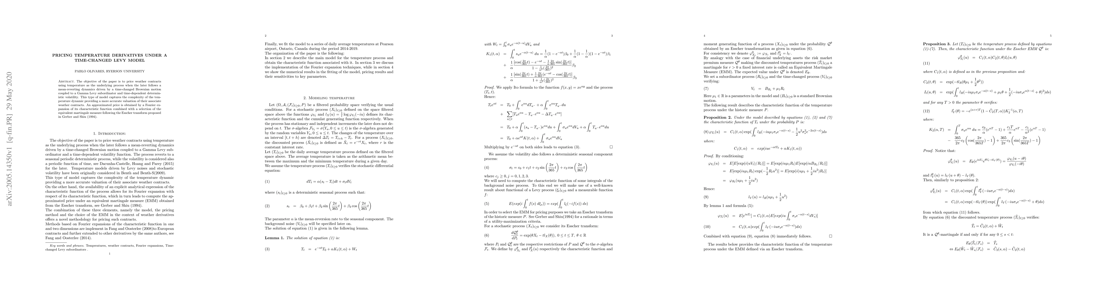 The objective of the paper is to price weather contracts using temperature as the underlying process when the later follows a mean-reverting dynamics driven by a time-changed Brownian motion coupled to a Gamma Levy subordinator and time-dependent deterministic volatility. This type of model captures the complexity of the temperature dynamic providing a more accurate valuation of their associate weather contracts. An approximated price is obtained by a Fourier expansion of its characteristic function combined with a selection of the equivalent martingale measure following the Esscher transform proposed in Gerber and Shiu (1994).