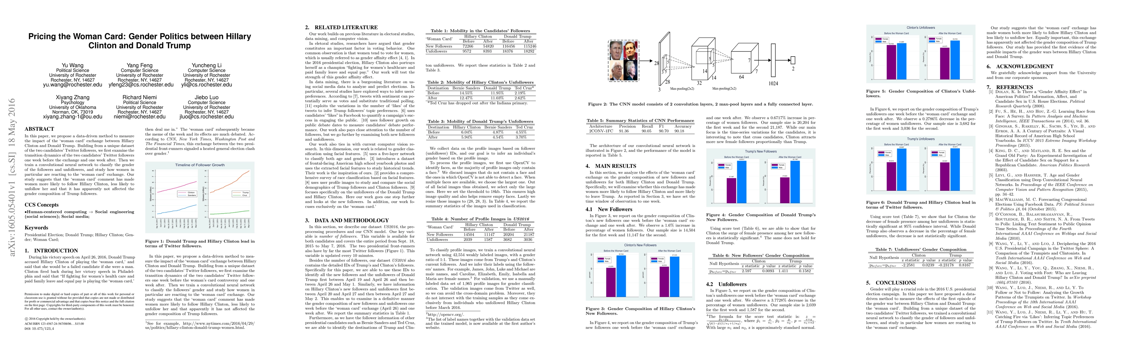 In this paper, we propose a data-driven method to measure the impact of the 'woman card' exchange between Hillary Clinton and Donald Trump. Building from a unique dataset of the two candidates' Twitter followers, we first examine the transition dynamics of the two candidates' Twitter followers one week before the exchange and one week after. Then we train a convolutional neural network to classify the gender of the followers and unfollowers, and study how women in particular are reacting to the 'woman card' exchange. Our study suggests that the 'woman card' comment has made women more likely to follow Hillary Clinton, less likely to unfollow her and that it has apparently not affected the gender composition of Trump followers.