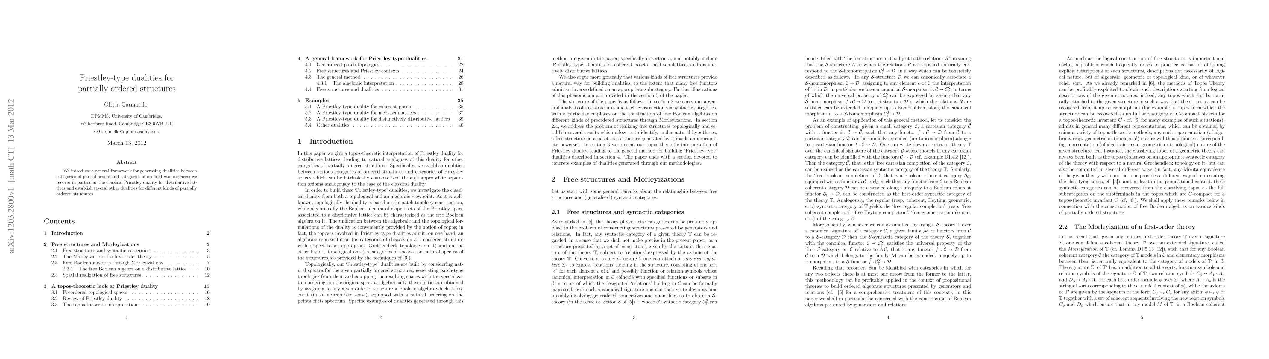 This paper presents a framework for generating dualities between categories of partial orders and ordered Stone spaces, recovering the classical Priestley duality for distributive lattices and establishing new dualities for various partially ordered structures.
