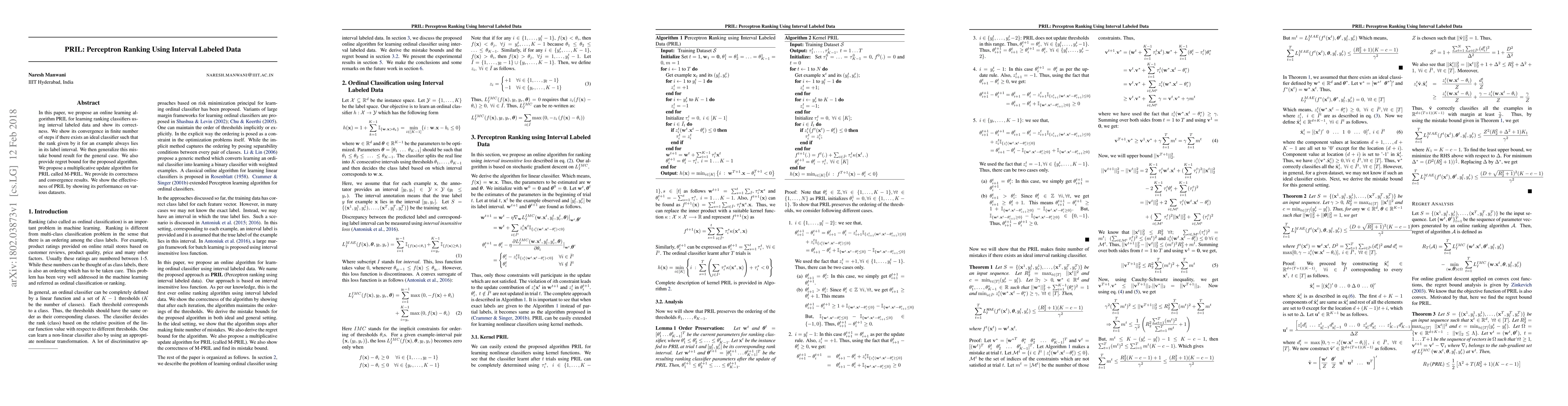 The paper introduces PRIL, an online learning algorithm for ranking classifiers using interval labeled data, proving its correctness and finite convergence. It also presents a multiplicative update version, M-PRIL, with correctness and convergence guarantees. The algorithm's effectiveness is demonstrated through performance on various datasets.