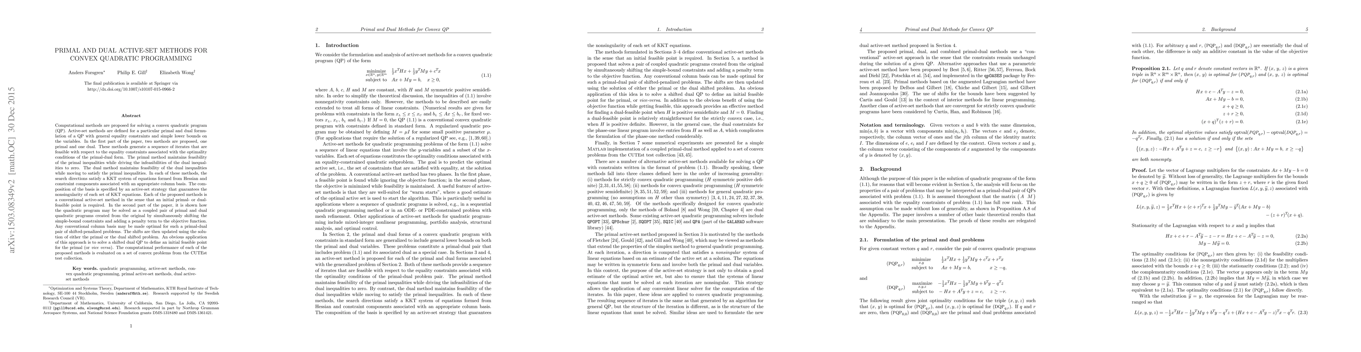 This paper proposes primal and dual active-set methods for solving convex quadratic programs (QP) with equality constraints and lower bounds. The methods maintain feasibility and iteratively drive infeasibilities to zero, utilizing an active-set strategy to ensure nonsingularity. The paper also explores solving the QP as a coupled pair of primal and dual problems with shifted constraints and penalties, demonstrating computational performance on convex problems.