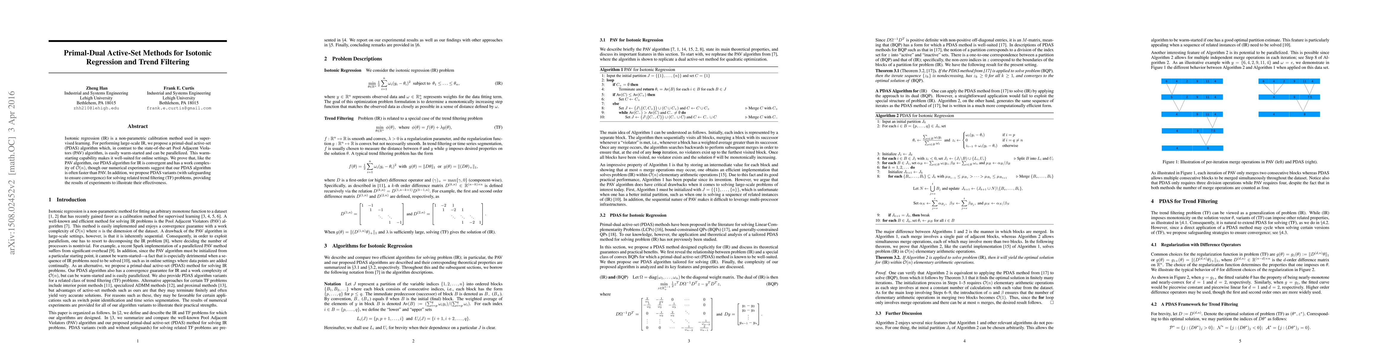Isotonic regression (IR) is a non-parametric calibration method used in supervised learning. For performing large-scale IR, we propose a primal-dual active-set (PDAS) algorithm which, in contrast to the state-of-the-art Pool Adjacent Violators (PAV) algorithm, can be parallized and is easily warm-started thus well-suited in the online settings. We prove that, like the PAV algorithm, our PDAS algorithm for IR is convergent and has a work complexity of O(n), though our numerical experiments suggest that our PDAS algorithm is often faster than PAV. In addition, we propose PDAS variants (with safeguarding to ensure convergence) for solving related trend filtering (TF) problems, providing the results of experiments to illustrate their effectiveness.