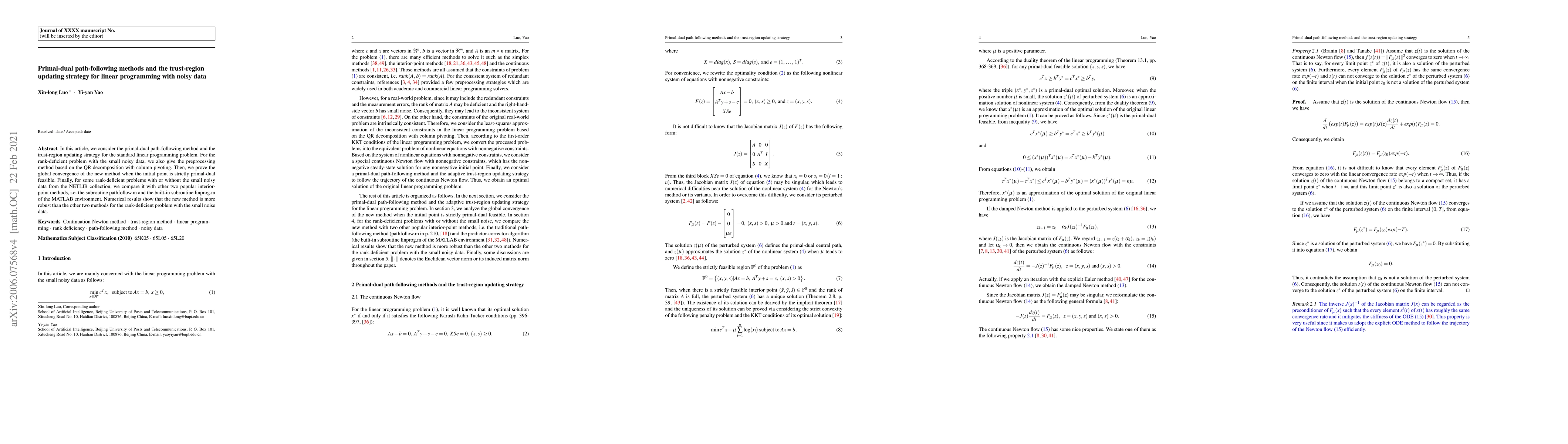 This paper explores a primal-dual path-following method combined with a trust-region updating strategy for linear programming, including a preprocessing method for rank-deficient problems with noisy data. The new method demonstrates global convergence and superior robustness compared to other interior-point methods in the presence of small noise.