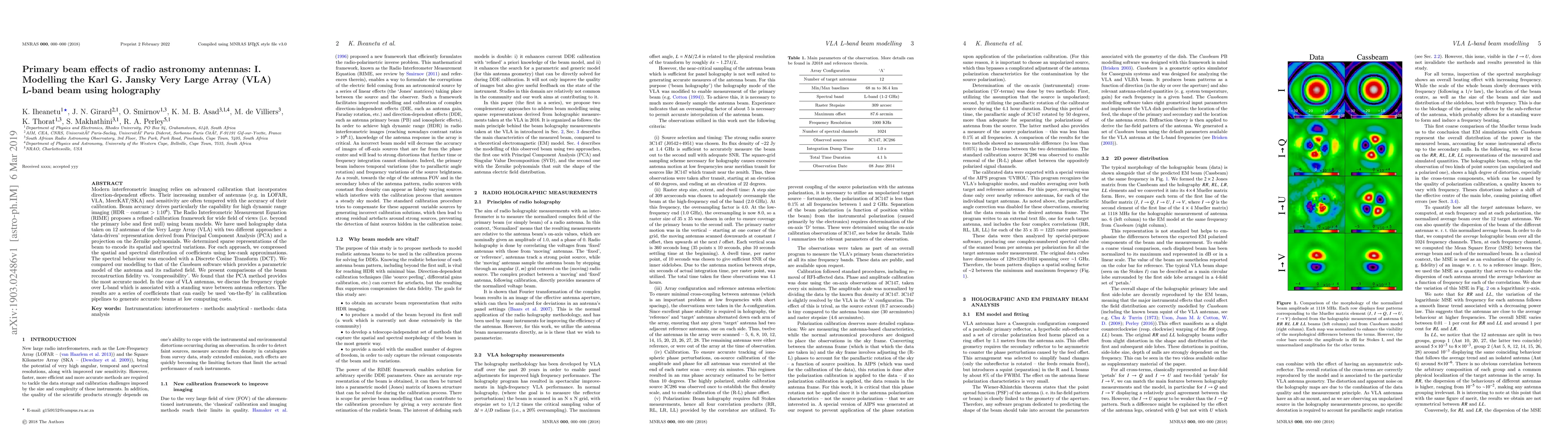 This research paper uses holography data from 12 VLA antennas to model their L-band beams using Principal Component Analysis (PCA) and Zernike polynomials, finding that the PCA method provides the most accurate beam reconstruction.