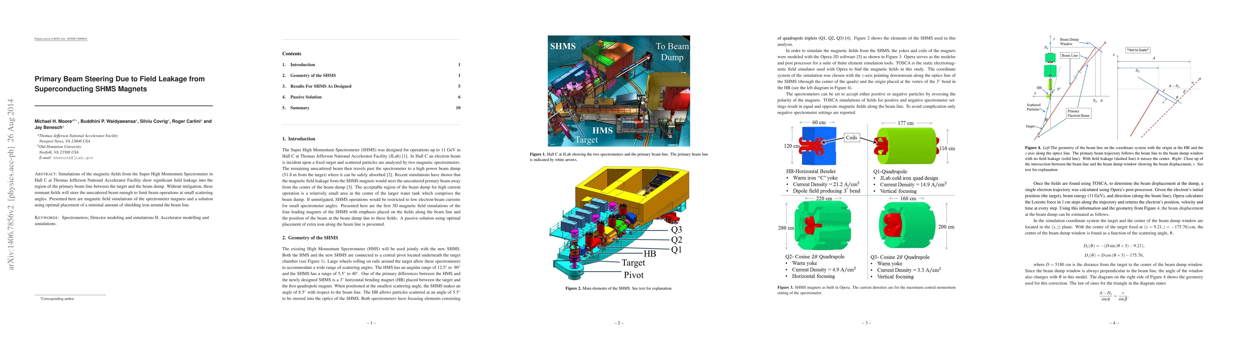 Simulations of the magnetic fields from the Super High Momentum Spectrometer in Hall C at Thomas Jefferson National Accelerator Facility show significant field leakage into the region of the primary beam line between the target and the beam dump. Without mitigation, these remnant fields will steer the unscattered beam enough to limit beam operations at small scattering angles. Presented here are magnetic field simulations of the spectrometer magnets and a solution using optimal placement of a minimal amount of shielding iron around the beam line.