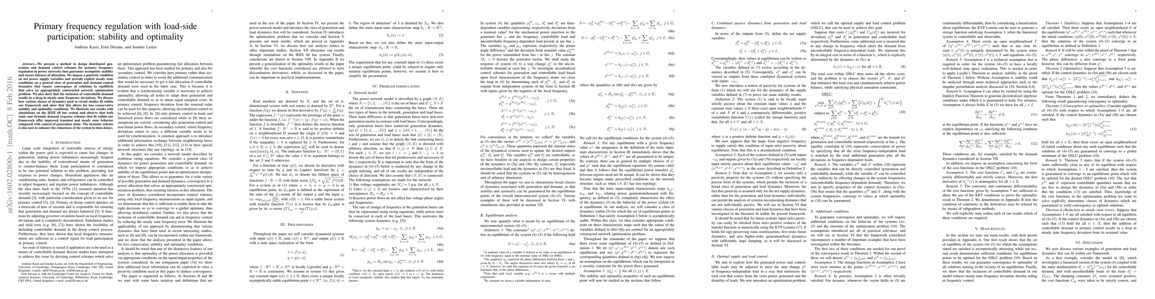 This paper proposes a method for designing distributed generation and demand control schemes to ensure stability and optimality in primary frequency regulation, demonstrating improved transient and steady-state behavior through simulations on the IEEE 68 bus system. The inclusion of controllable demand reduces frequency deviations and enhances system robustness against time-delays.