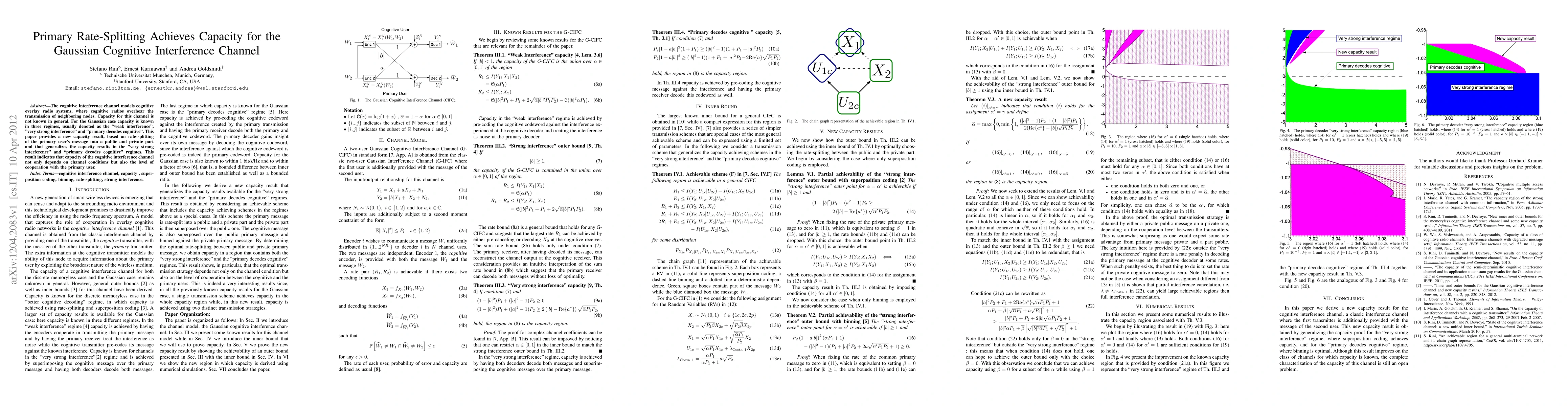 This paper introduces a primary rate-splitting technique to achieve capacity for the Gaussian cognitive interference channel, generalizing known capacity results in "very strong interference" and "primary decodes cognitive" regimes. The findings suggest that capacity depends on both channel conditions and the level of cooperation with the primary user.
