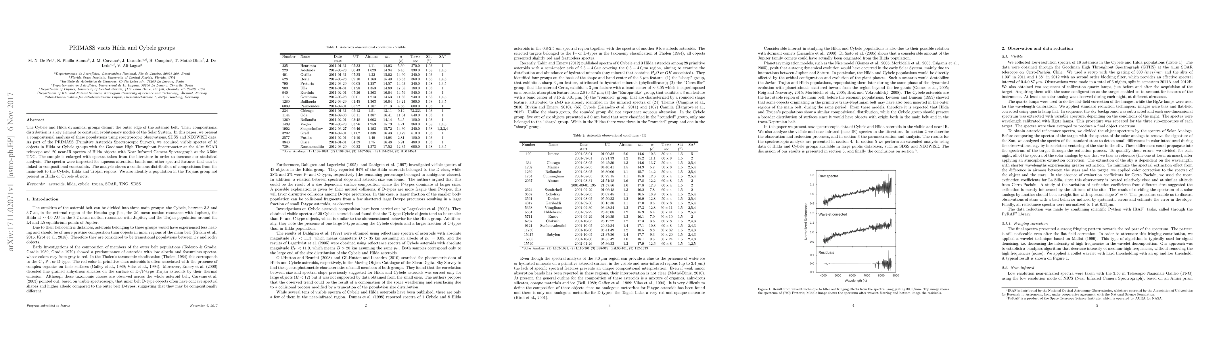 Briefly described spectroscopic observations of 18 objects in Hilda and Cybele groups using the Goodman High Throughput Spectrometer and Near Infrared Camera Spectrograph.