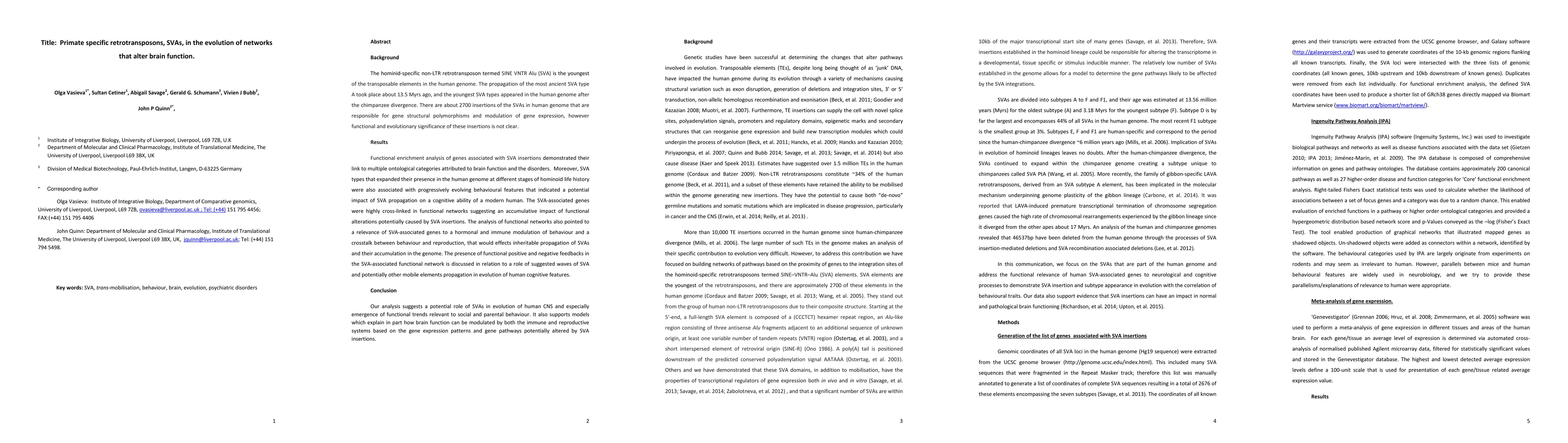 The hominid-specific non-LTR retrotransposon termed SINE VNTR Alu (SVA) is the youngest of the transposable elements in the human genome. The propagation of the most ancient SVA type A took place about thirteen millions years ago ago, and the youngest SVA types appeared in the human genome after the chimpanzee divergence. Functional enrichment analysis of genes associated with SVA insertions demonstrated their strong link to multiple ontological categories attributed to brain function and the disorders. SVA types that expanded their presence in the human genome at different stages of hominoid life history were also associated with progressively evolving behavioural features that indicated a potential impact of SVA propagation on a cognitive ability of a modern human. The SVA-associated genes were highly cross-linked in functional networks suggesting an accumulative impact of functional alterations potentially caused by SVA insertions. Our analysis uncovered a potential role of SVAs in evolution of human CNS and especially emergence of functional trends relevant to social and parental behaviour. It also supports models which explain in part how brain function can be modulated by both the immune and reproductive systems based on the gene expression patterns and gene pathways potentially altered by SVA insertions.