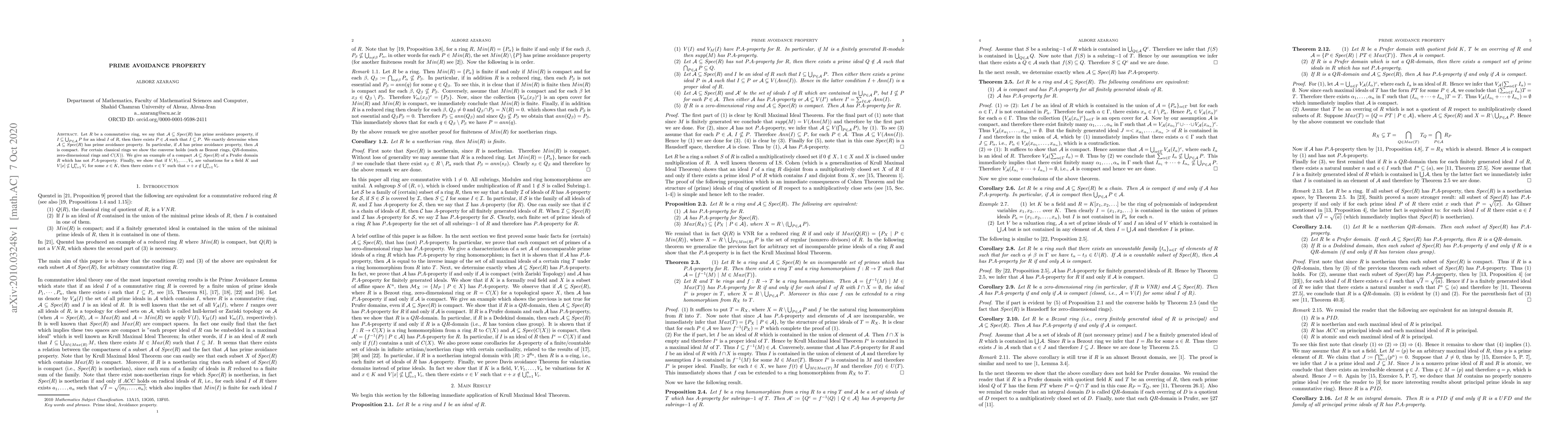 This paper investigates the prime avoidance property in commutative rings, determining conditions under which a subset of the spectrum of a ring possesses this property. It proves that such subsets are compact and provides examples where the converse holds for specific classical rings.