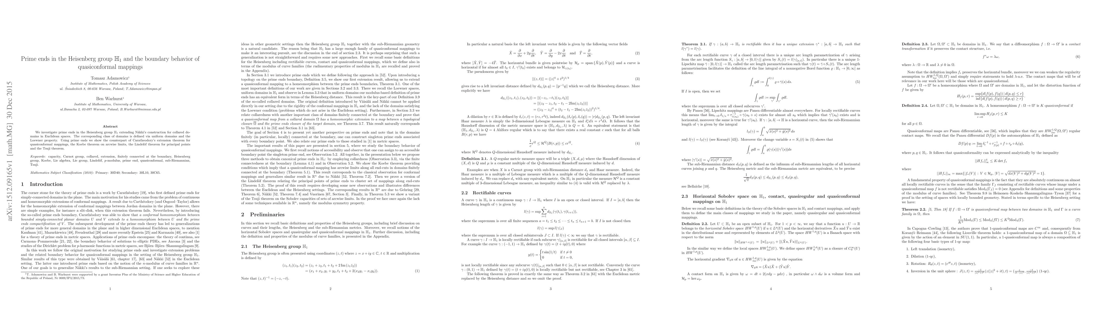 Summary: This paper extends Nääkki's construction of prime ends to the Heisenberg group $\mathbb{H}_{1}$ and proves the analogs of several classical theorems in quasiconformal mappings, including Carathéodory's extension theorem and the Koebe theorem on arcwise limits, using prime ends defined via uniform domains and the Loewner property.