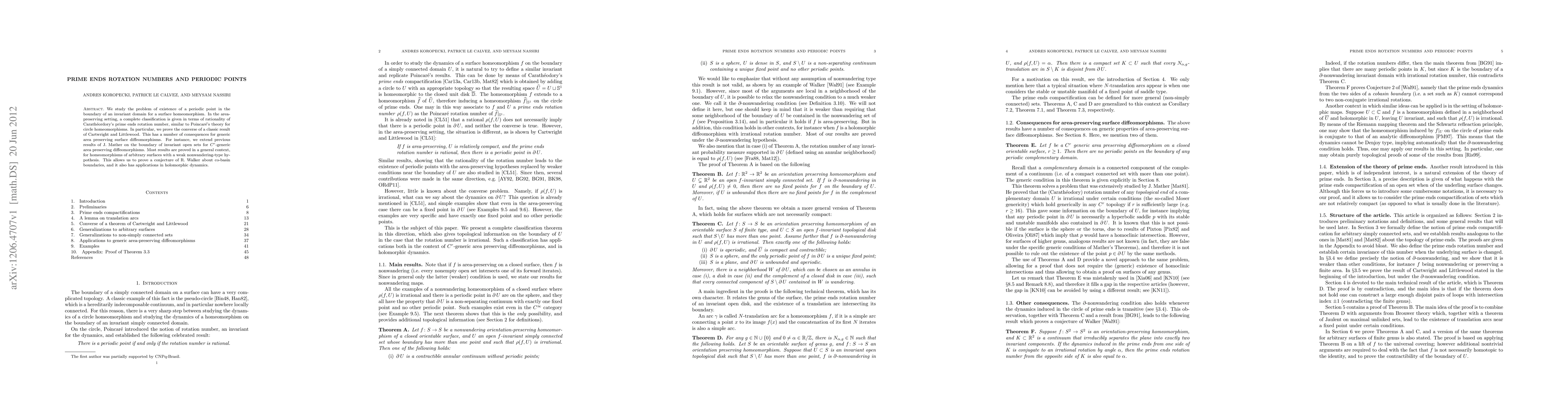 We study the problem of existence of a periodic point in the boundary of an invariant domain for a surface homeomorphism. In the area-preserving setting, a complete classification is given in terms of rationality of Carath\'eordory's prime ends rotation number, similar to Poincar\'e's theory for circle homeomorphisms. In particular, we prove the converse of a classic result of Cartwright and Littlewood. This has a number of consequences for generic area preserving surface diffeomorphisms. For instance, we extend previous results of J. Mather on the boundary of invariant open sets for $C^r$-generic area preserving diffeomorphisms. Most results are proved in a general context, for homeomorphisms of arbitrary surfaces with a weak nonwandering-type hypothesis. This allows us to prove a conjecture of R. Walker about co-basin boundaries, and it also has applications in holomorphic dynamics.
