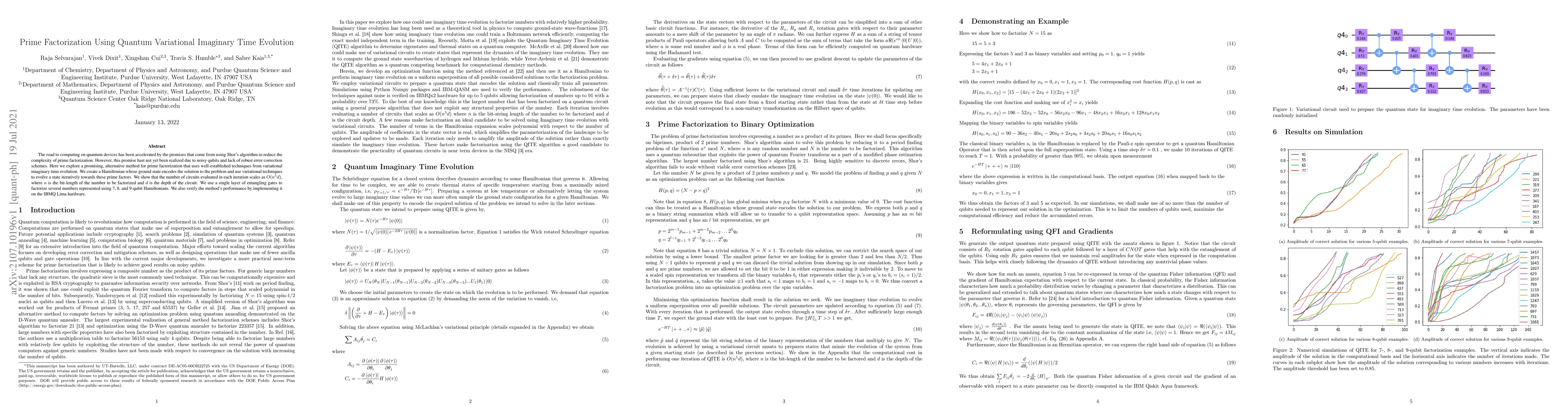 Researchers propose a novel method for prime factorization using quantum variational imaginary time evolution, which uses established techniques to efficiently solve the problem without relying on noisy qubits or error correction schemes.