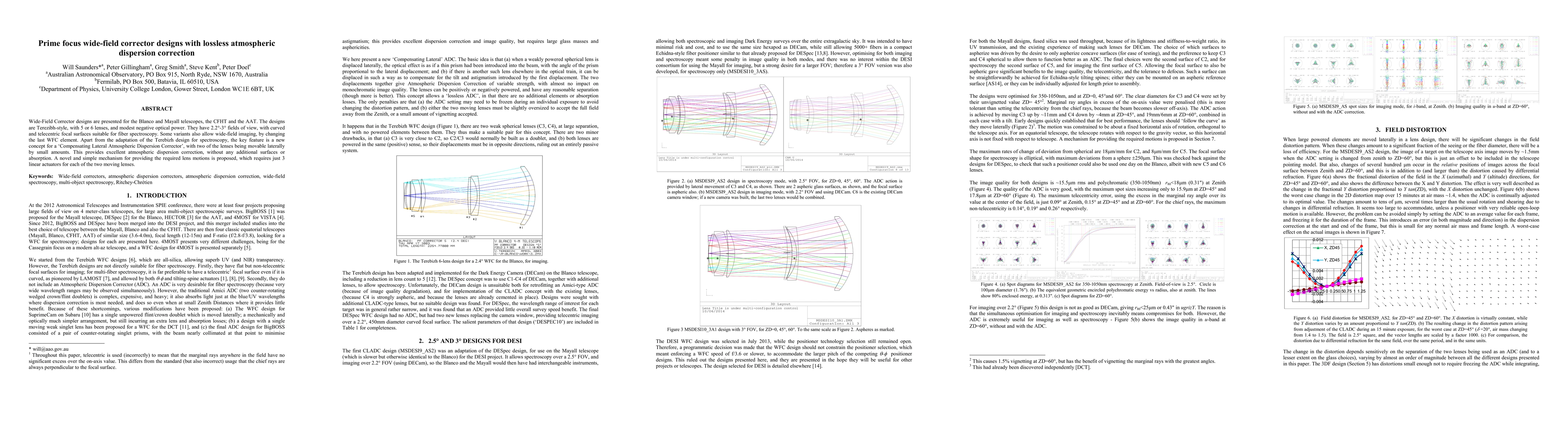 This paper presents Terezibh-style wide-field corrector designs for several telescopes, featuring 5 or 6 lenses with modest negative optical power and 2.2-3 degree fields of view. A novel 'Compensating Lateral Atmospheric Dispersion Corrector' with movable lenses offers lossless atmospheric dispersion correction using a simple mechanism requiring only 3 linear actuators.