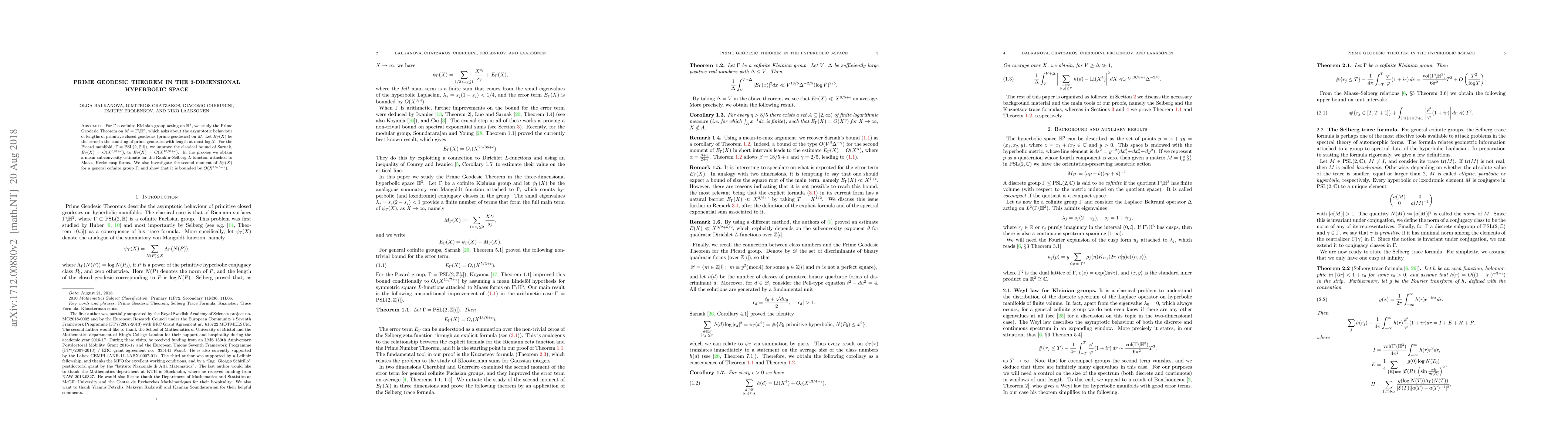 This paper improves the asymptotic error bound for counting primitive closed geodesics on the Picard manifold in 3-dimensional hyperbolic space, achieving $E_{\Gamma}(X)=O(X^{13/8+\epsilon})$, and also provides a mean subconvexity estimate for the Rankin-Selberg $L$-function associated with Maass-Hecke cusp forms. Additionally, it investigates the second moment of the error term for a general cofinite group, showing it is bounded by $O(X^{16/5+\epsilon})$.
