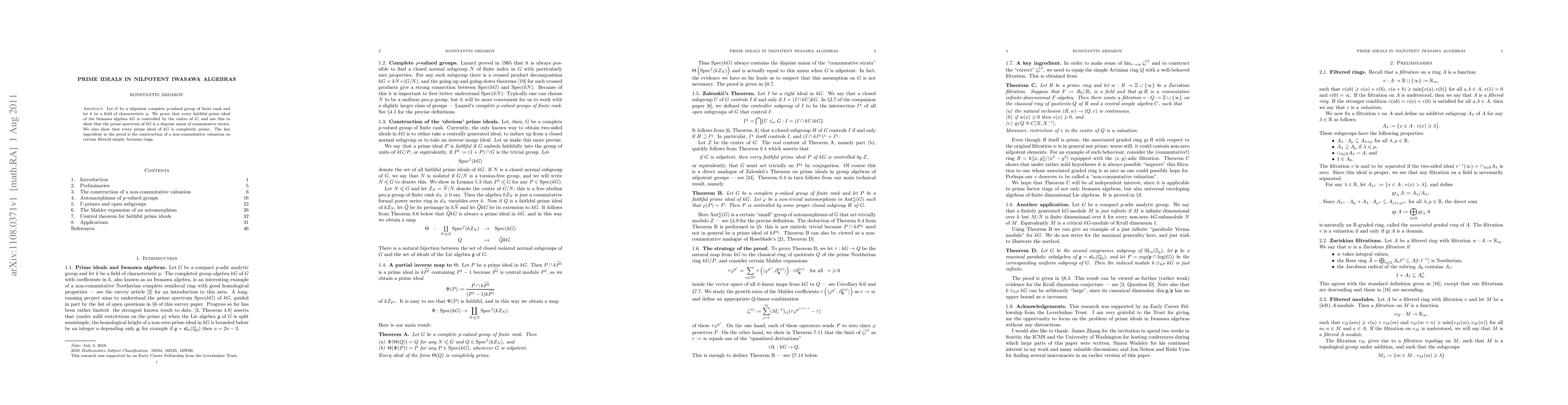 This paper proves that every faithful prime ideal in the Iwasawa algebra of a nilpotent p-valued group is controlled by the group's center, leading to a decomposition of the prime spectrum into commutative strata. The proof leverages a non-commutative valuation on filtered simple Artinian rings.