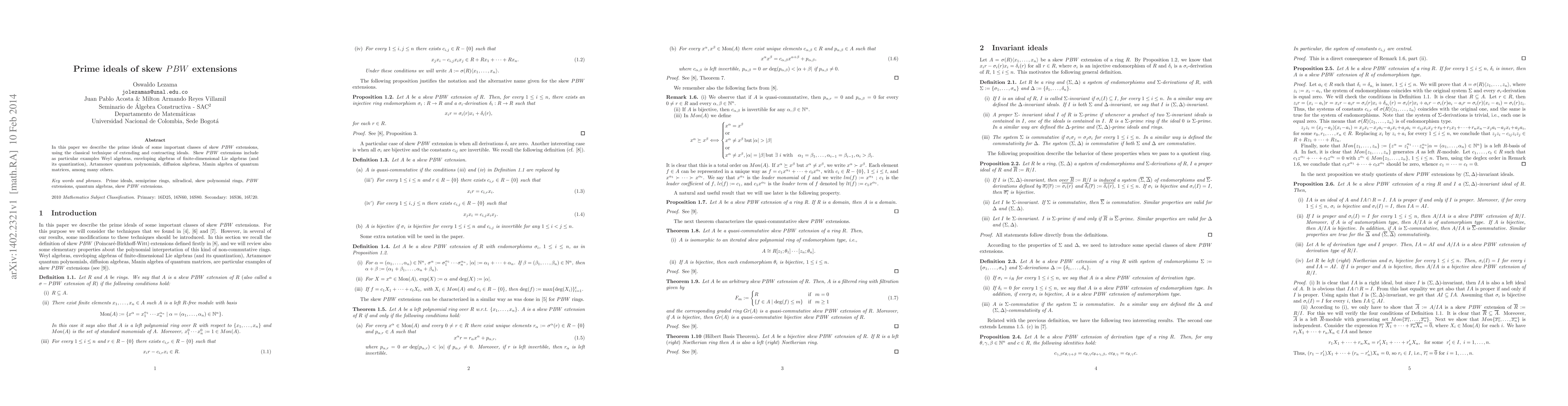 This paper investigates prime ideals in various skew PBW extensions, employing the method of extending and contracting ideals. It focuses on notable examples like Weyl algebras, quantizations of Lie algebras, and quantum matrix algebras.