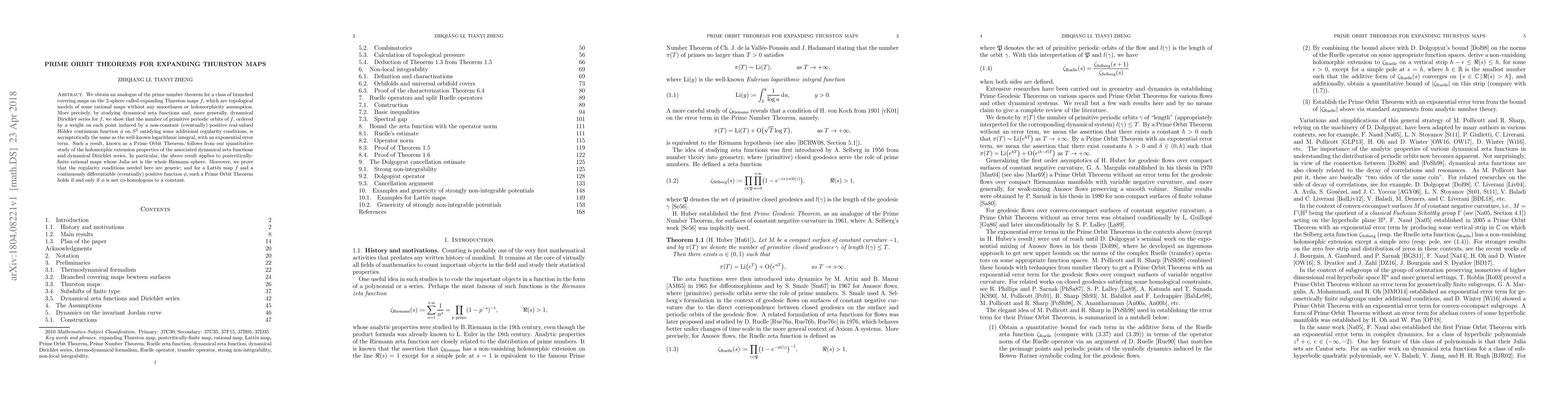 We obtain an analogue of the prime number theorem for a class of branched covering maps on the $2$-sphere called expanding Thurston maps $f$, which are topological models of some rational maps without any smoothness or holomorphicity assumption. More precisely, by studying dynamical zeta functions and, more generally, dynamical Dirichlet series for $f$, we show that the number of primitive periodic orbits of $f$, ordered by a weight on each point induced by a non-constant (eventually) positive real-valued H\"{o}lder continuous function $\phi$ on $S^2$ satisfying some additional regularity conditions, is asymptotically the same as the well-known logarithmic integral, with an exponential error term. Such a result, known as a Prime Orbit Theorem, follows from our quantitative study of the holomorphic extension properties of the associated dynamical zeta functions and dynamical Dirichlet series. In particular, the above result applies to postcritically-finite rational maps whose Julia set is the whole Riemann sphere. Moreover, we prove that the regularity conditions needed here are generic; and for a Latt\`{e}s map $f$ and a continuously differentiable (eventually) positive function $\phi$, such a Prime Orbit Theorem holds if and only if $\phi$ is not co-homologous to a constant.