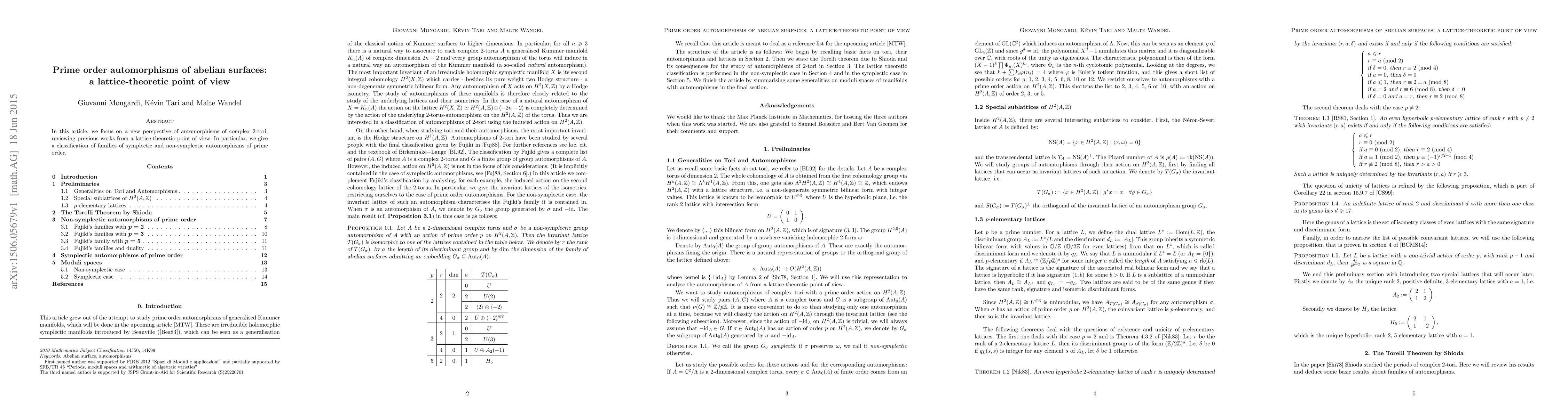 Summary: This paper provides a lattice-theoretic classification of prime order automorphisms of complex 2-tori, distinguishing between symplectic and non-symplectic families, and reviews prior research from a new perspective.