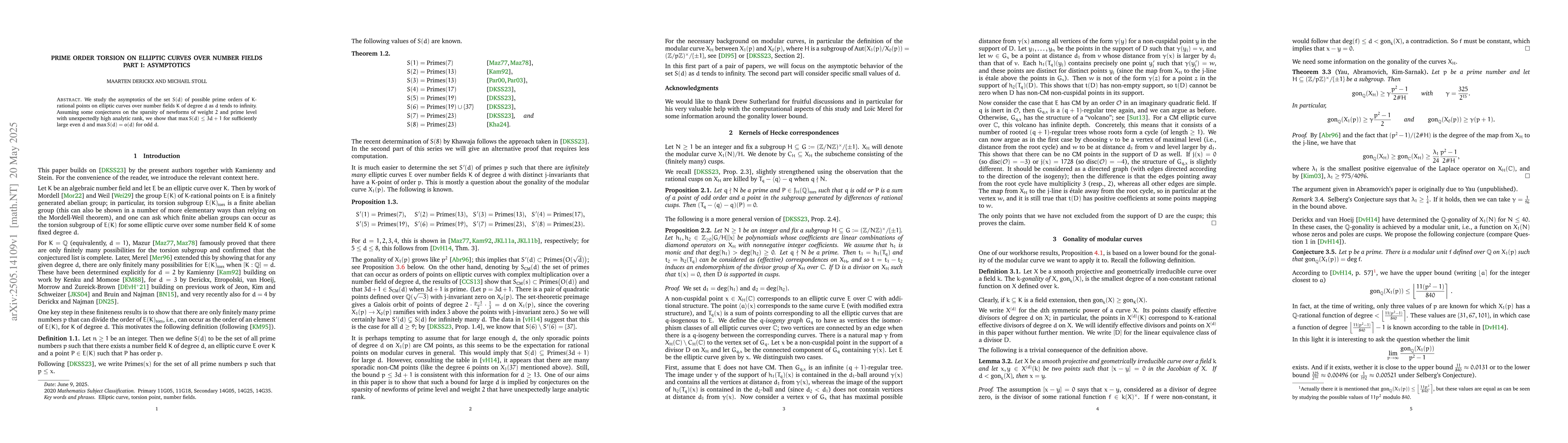 Asymptotic bounds for the maximum prime order of torsion points on elliptic curves over number fields under certain conjectures.