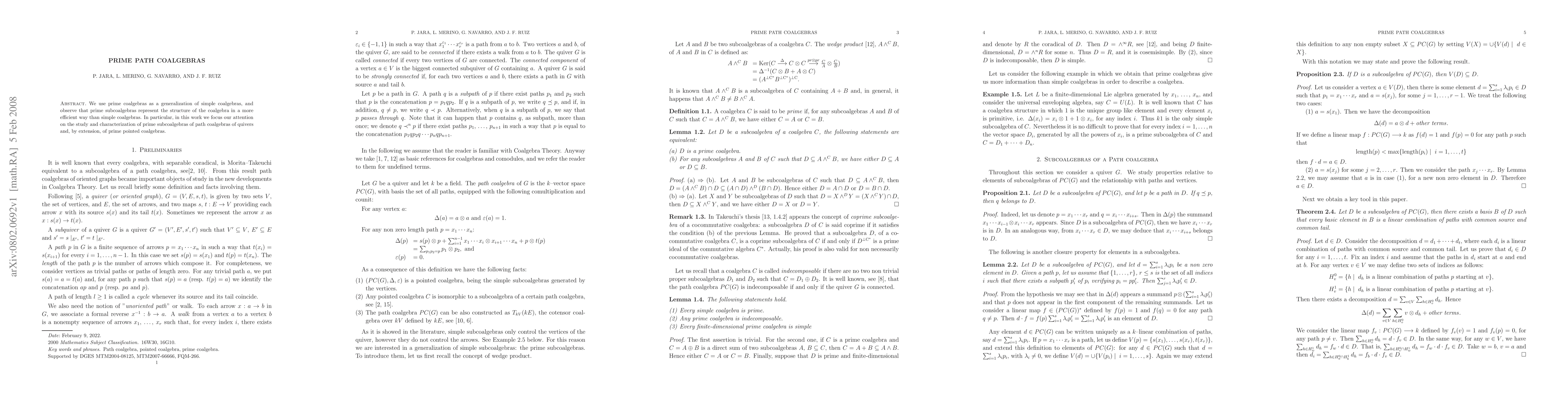 This paper explores prime coalgebras as a generalization of simple coalgebras, demonstrating that prime subcoalgebras more efficiently represent coalgebra structure. The study focuses on characterizing prime subcoalgebras in path coalgebras of quivers and prime pointed coalgebras.
