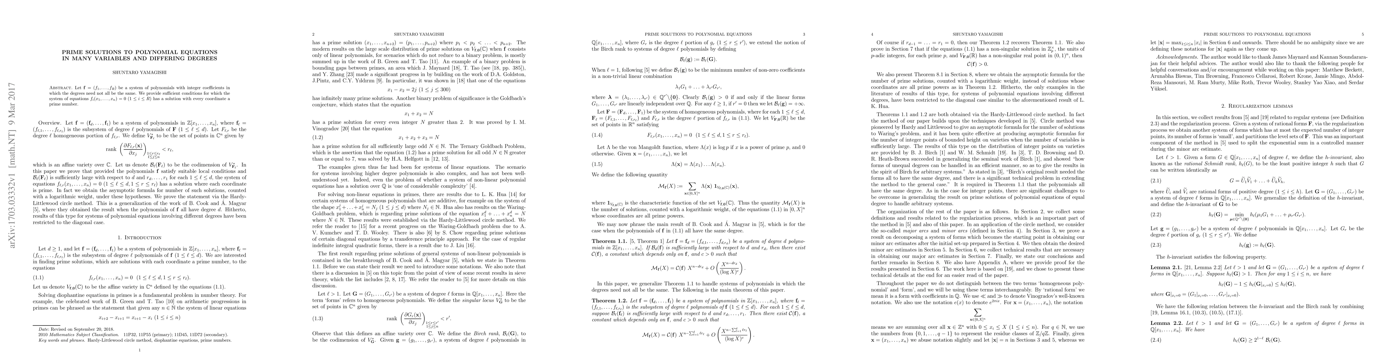 This paper provides sufficient conditions for systems of polynomial equations with varying degrees to have prime solutions, extending previous results that only applied when all polynomials had the same degree. It uses the Hardy-Littlewood circle method to derive an asymptotic formula for the number of such prime solutions, counted with a logarithmic weight.