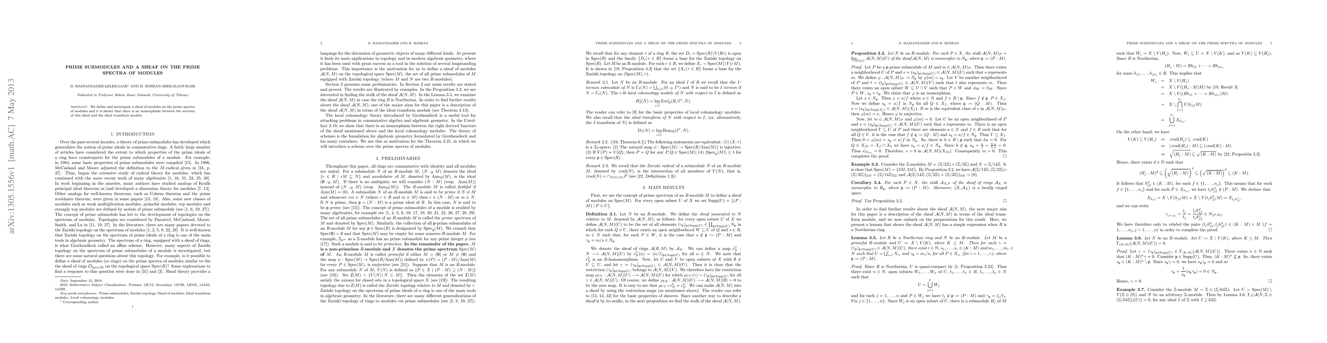 Researchers investigate a sheaf of modules on prime spectra of modules, discovering an isomorphism between its sections and ideal transform modules.