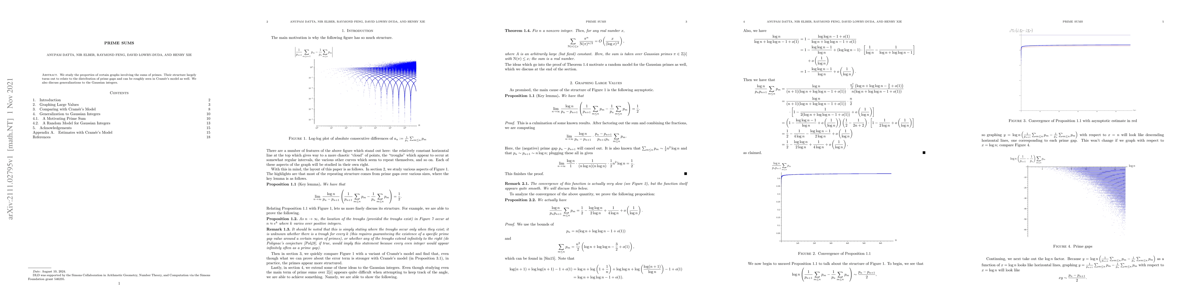 This paper investigates graphs formed by sums of primes, revealing structural connections to the distribution of prime gaps and aligning with Cramér's model. It also explores extensions to graphs involving Gaussian integers.