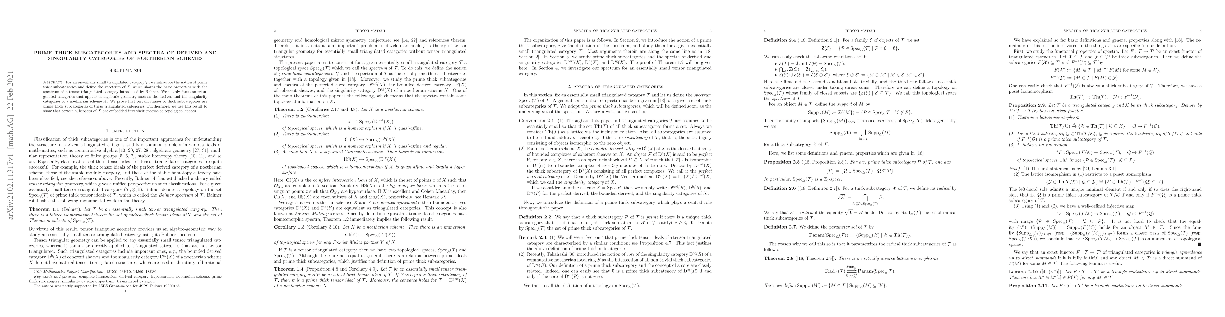 This paper introduces the concept of prime thick subcategories in triangulated categories and defines the spectrum of these categories, analogous to Balmer's spectrum for tensor triangulated categories. It focuses on derived and singularity categories of noetherian schemes, proving that specific thick subcategories are prime and showing these relate to embedded subspaces in the scheme's spectrum.