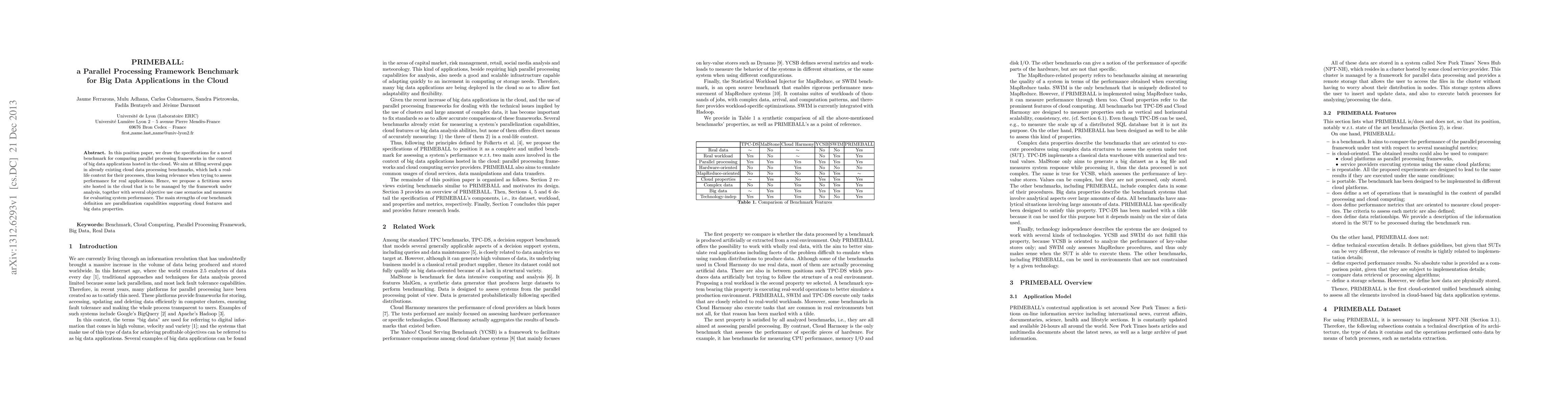 A new benchmark framework called PRIMEBALL is proposed to evaluate parallel processing frameworks for big data applications in the cloud, addressing gaps in existing benchmarks.