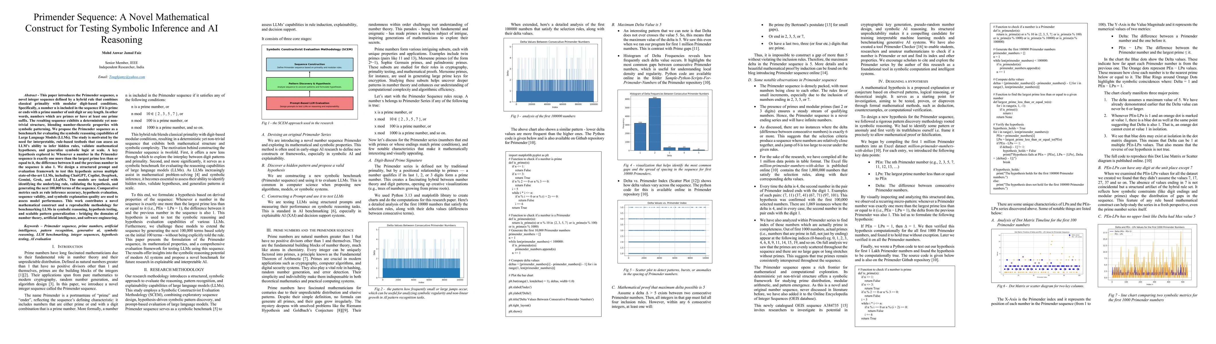 A new mathematical construct called the Primender sequence is introduced to test symbolic inference and AI reasoning in Large Language Models (LLMs). The paper proposes a benchmark for LLMs to infer rules, validate hypotheses, and generalize symbolic logic, with promising results from multiple state-of-the-art models.