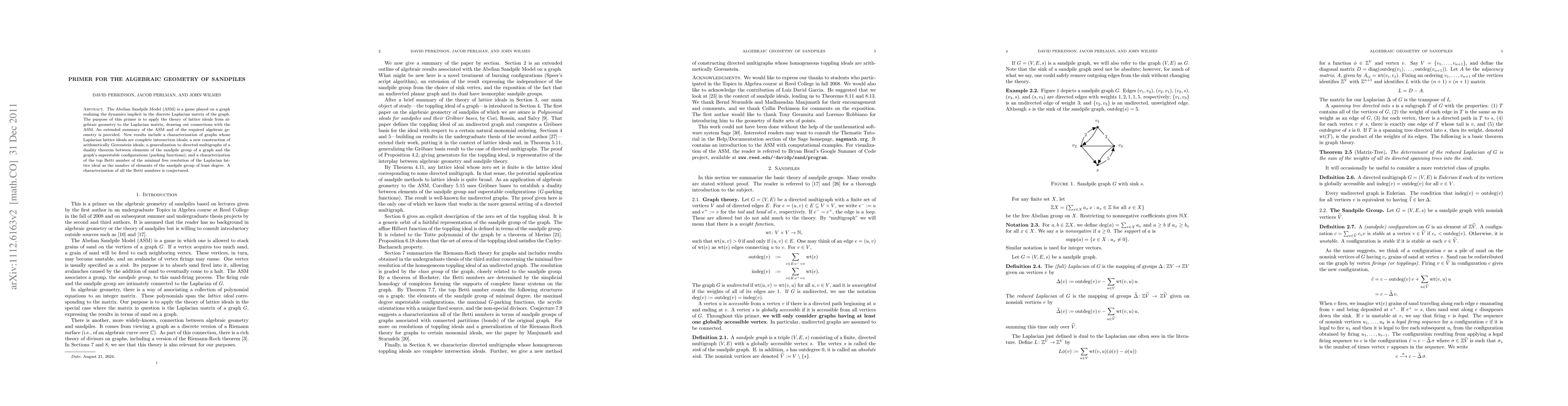 This primer applies algebraic geometry to the Abelian Sandpile Model, a game on graphs that studies discrete Laplacian dynamics. New results include characterizations of complete intersection ideals and arithmetically Gorenstein ideals in the context of sandpiles and graph configurations.