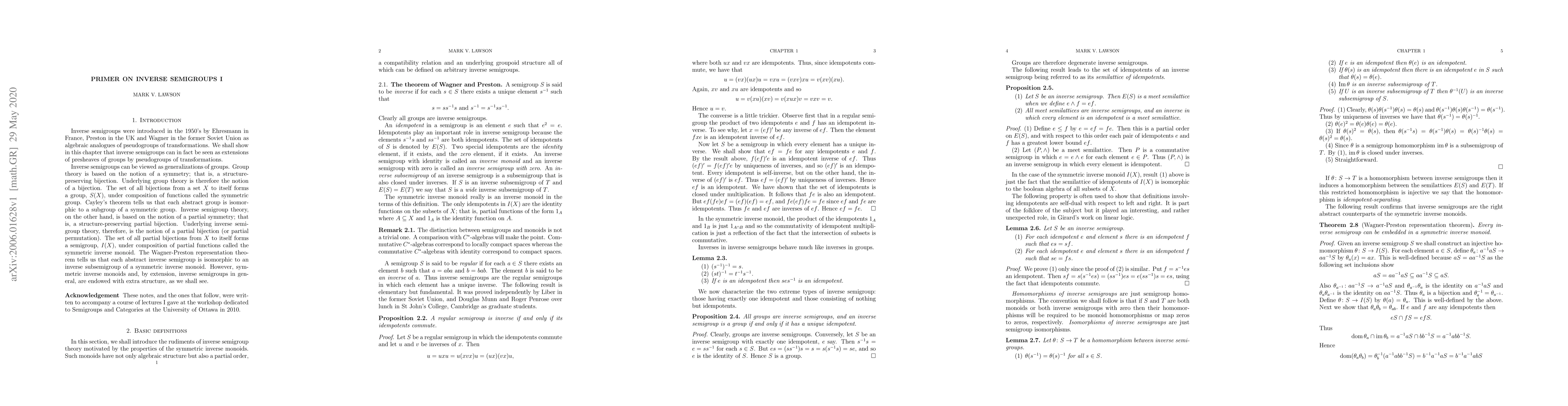 This is an overview of the basics of inverse semigroup theory written for the Workshop on Semigroups and Categories held at the University of Ottawa in 2010.