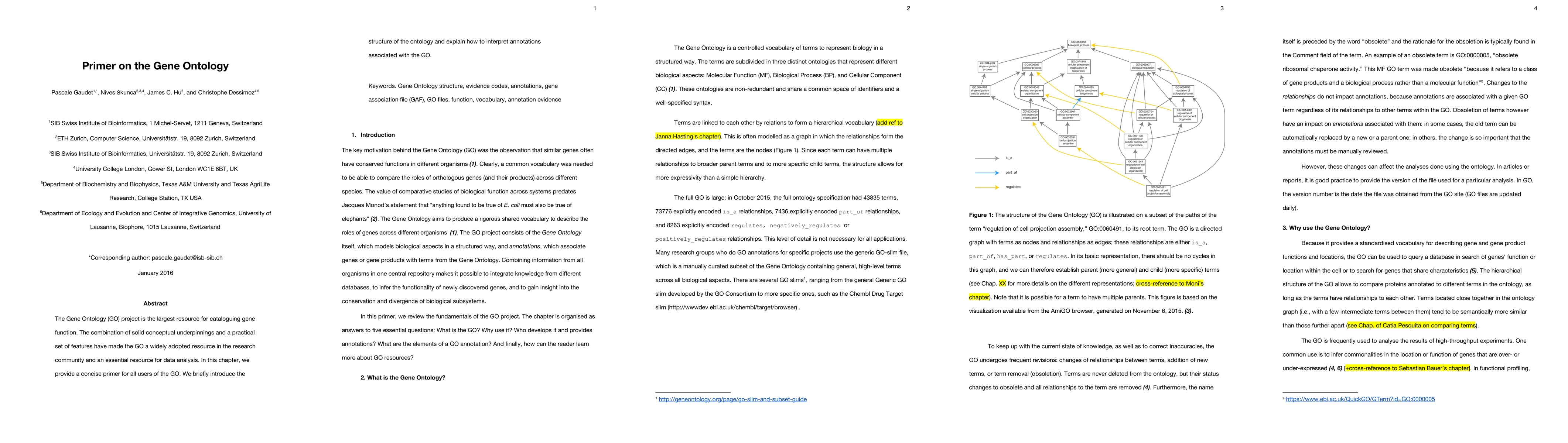 This paper offers a concise primer on the Gene Ontology (GO), detailing its conceptual framework and practical features, and provides guidance on understanding its structure and interpreting annotations for effective use in gene function research.