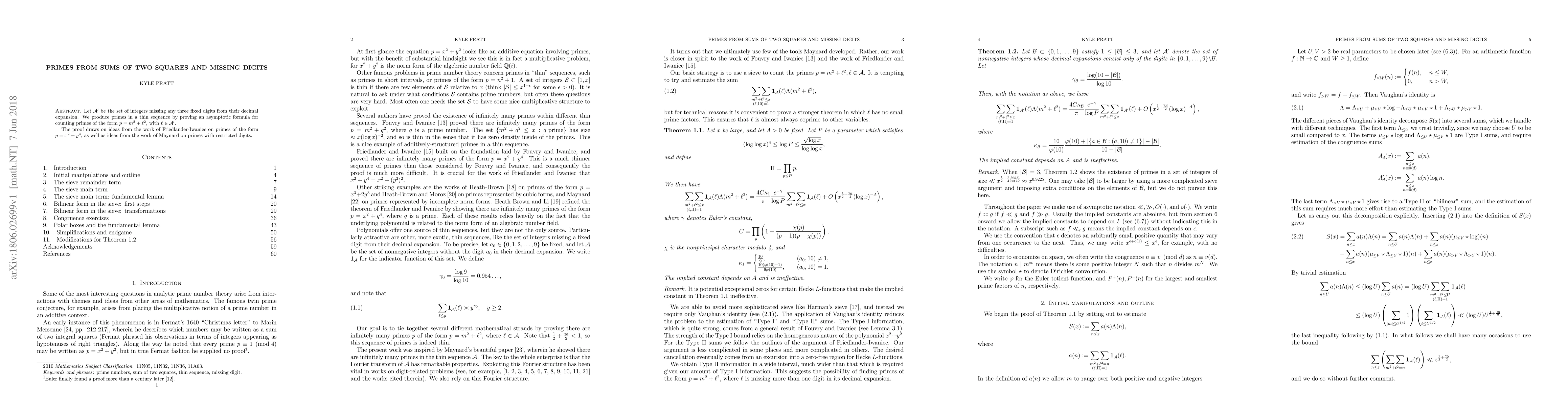 This paper develops a method to count primes of the form $p = m^2 + \ell^2$ where $\ell$ lacks three specific digits, using ideas from Friedlander-Iwaniec and Maynard, and establishes an asymptotic formula for these primes.