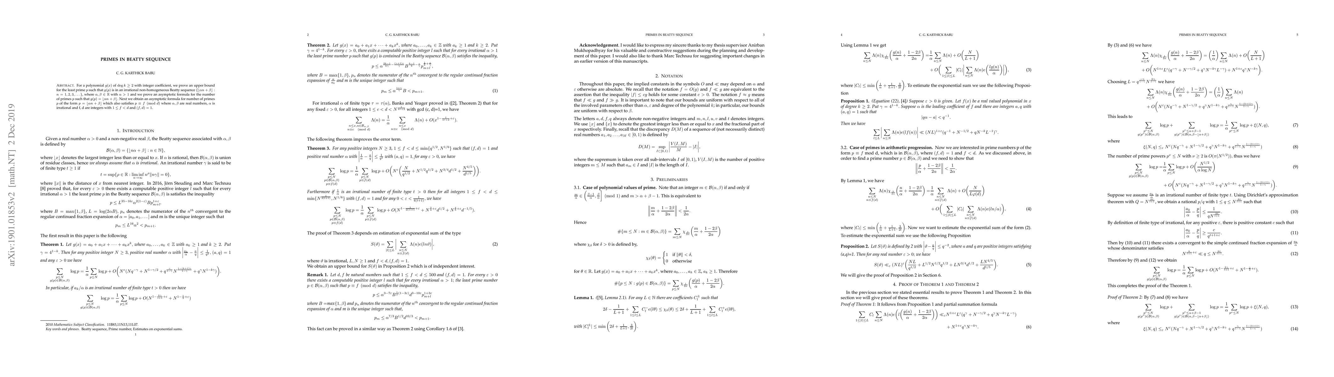 The paper introduces novel techniques for estimating exponential sums and utilizes these to derive precise bounds and asymptotic formulas for primes in Beatty sequences.