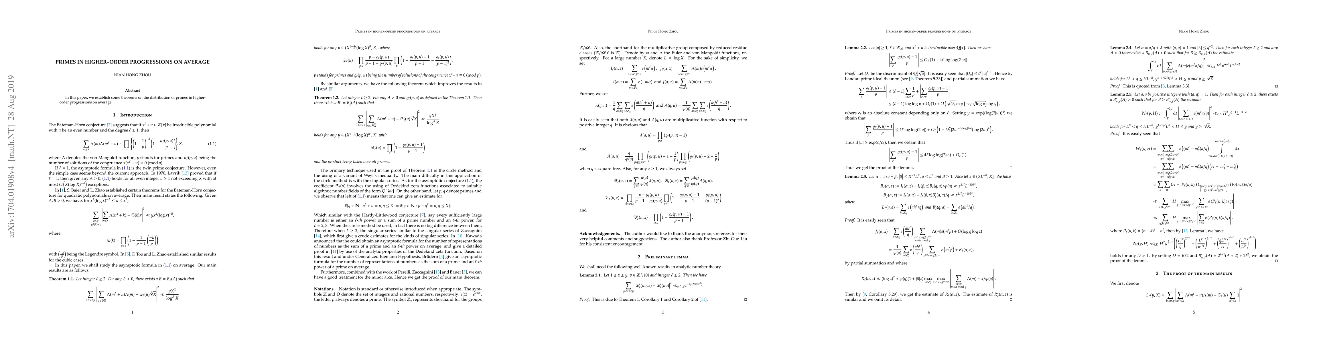 In this paper, we establish some theorems on the distribution of primes in higher-order progressions on average.