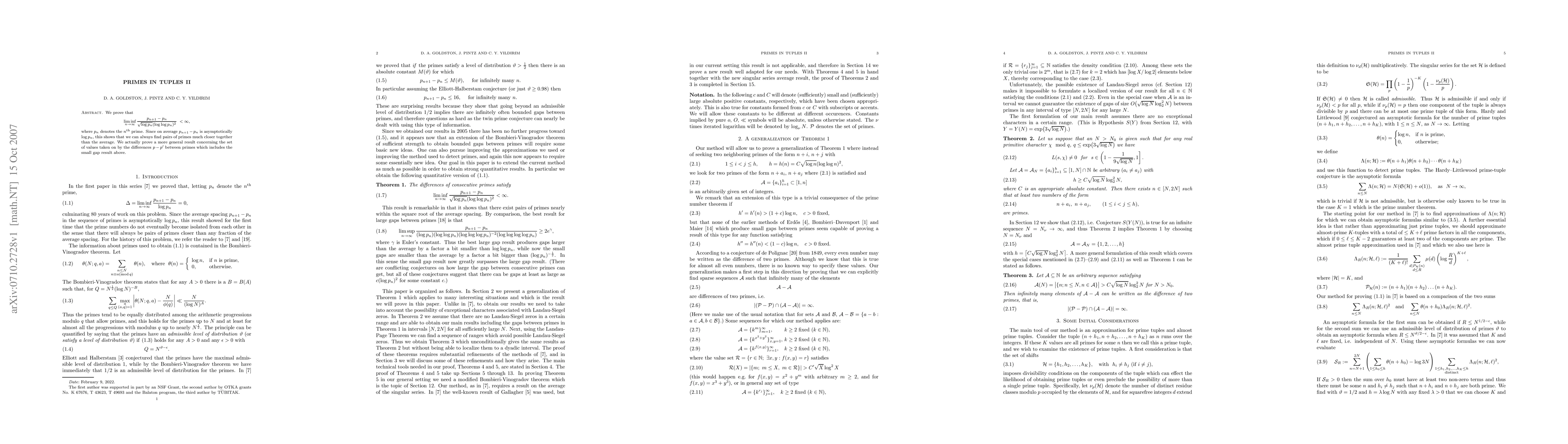 We prove that there are infinitely often pairs of primes much closer than the average spacing between primes - almost within the square root of the average spacing. We actually prove a more general result concerning the set of values taken on by the differences between primes.